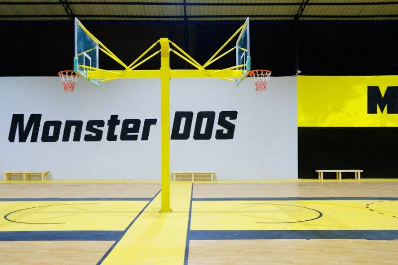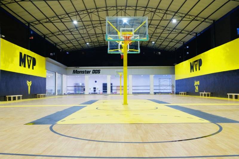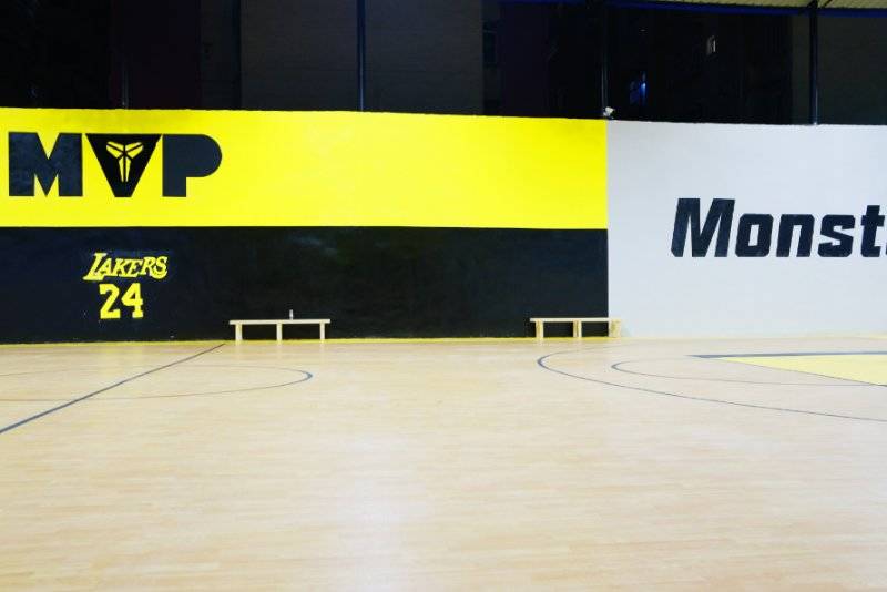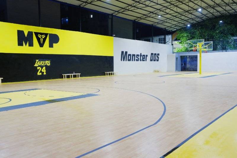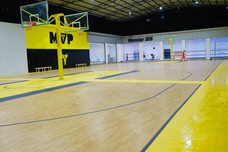 贵州安顺篮球场 4.5枫木加黄色陨石纹黑色陨石纹 775平塑胶地板